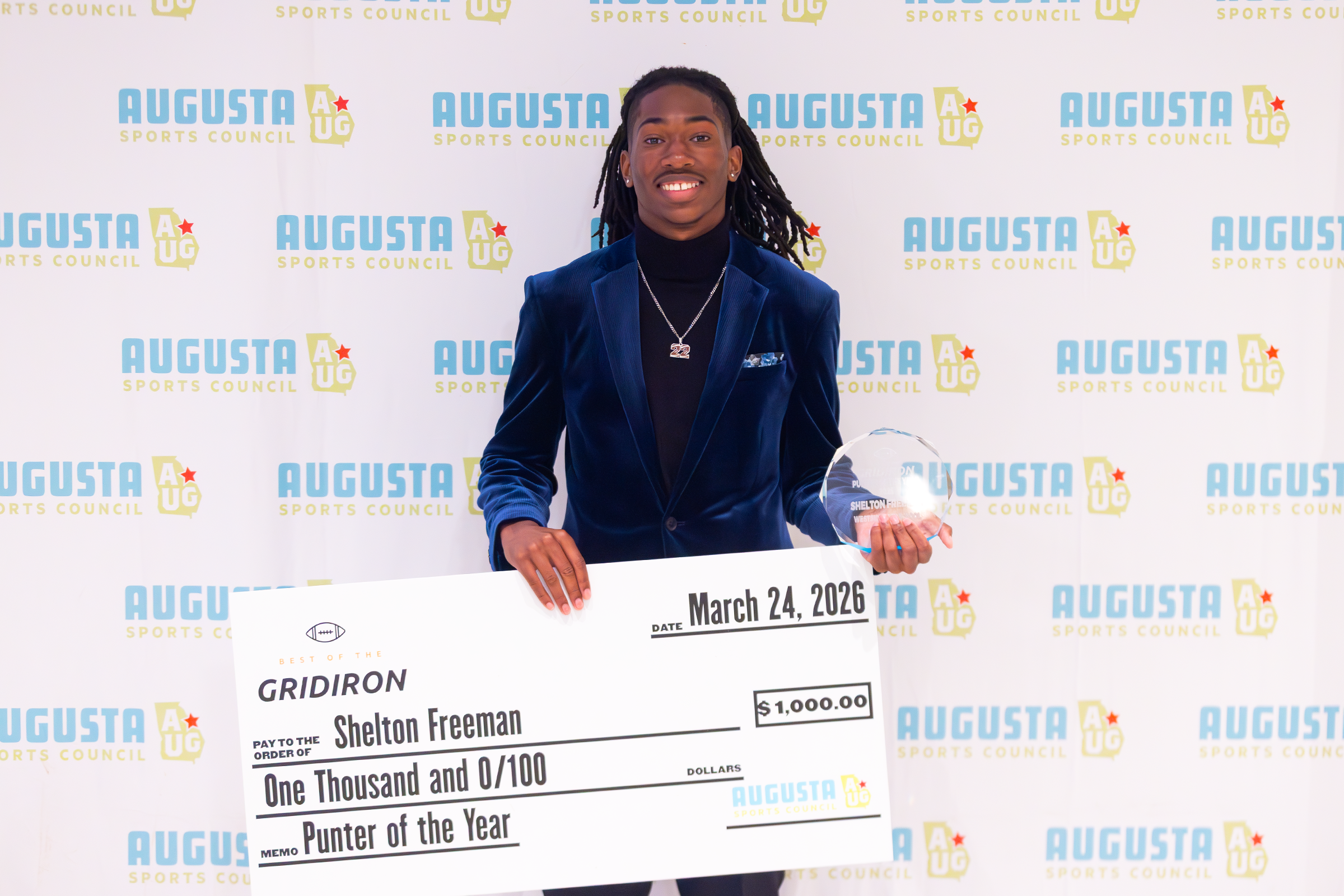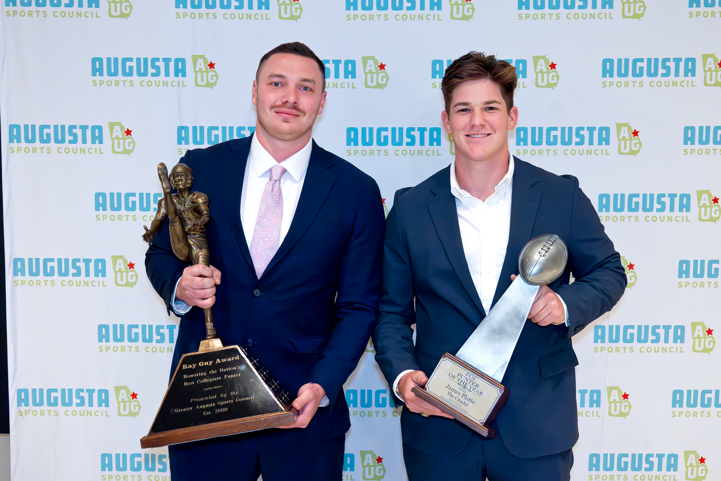 The Augusta Sports Council Best of the Gridiron Awards Banquet, presented by Augusta Coca-Cola, the Aiken Standard, and WRDW-TV, took place on Tuesday, March 24, 2026, at First Baptist of Augusta inside Fellowship Hall. Our FCS Punter of the Year, James Platte (The Citadel), and our Ray Guy Award winner, Brett Thorson (University of Georgia), received their awards and spoke at the banquet. We also presented the Georgia All-Area First Team Offense and Defense, and the South Carolina All-Area First Team Offense and Defense. Coach of the Year, Offensive Player of the Year, Defensive Player of the Year, and Punter of the Year were also honored. Three high school student-athletes received $1,000 scholarships.