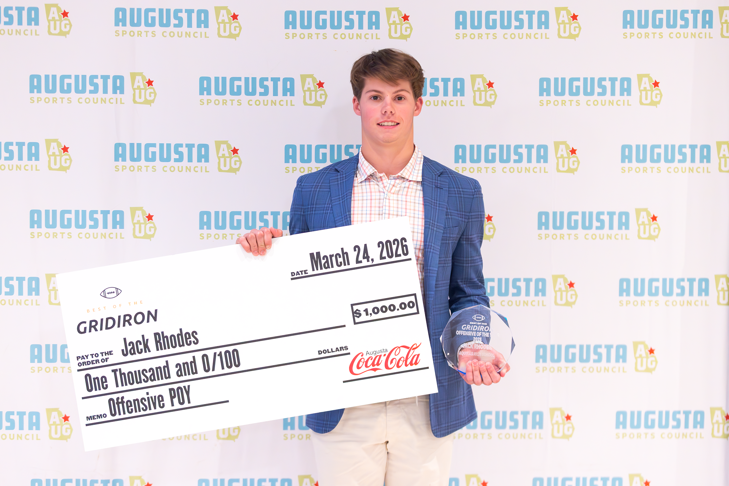 Offensive Player of the Year: Jack Rhodes of Aquinas High School received a $1,000 scholarship sponsored by Augusta Coca-Cola