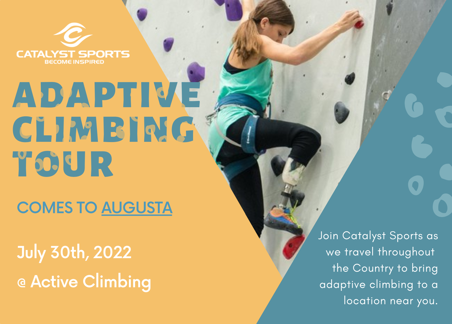 Back to All Events Catalyst Sports Adaptive Climbing Tour Saturday, July 30, 2022 8:00 AM 6:00 PM Google Calendar ICS