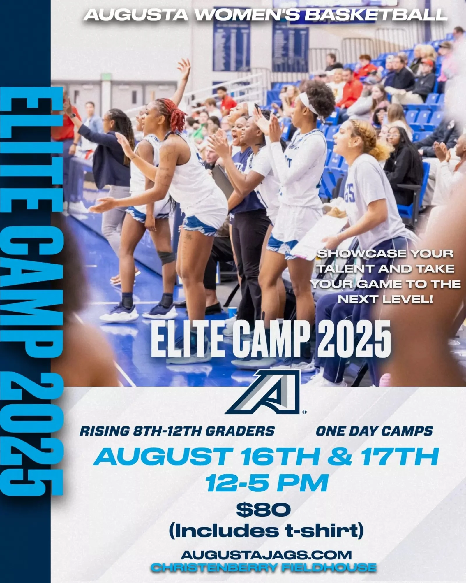 Back to All Events Augusta Women's Basketball Elite Camp Saturday, August 16, 2025 12:00 PM 5:00 PM Google Calendar ICS Register: https://fundraise.givesmart.com/form/hJZidQ?vid=1jtd44